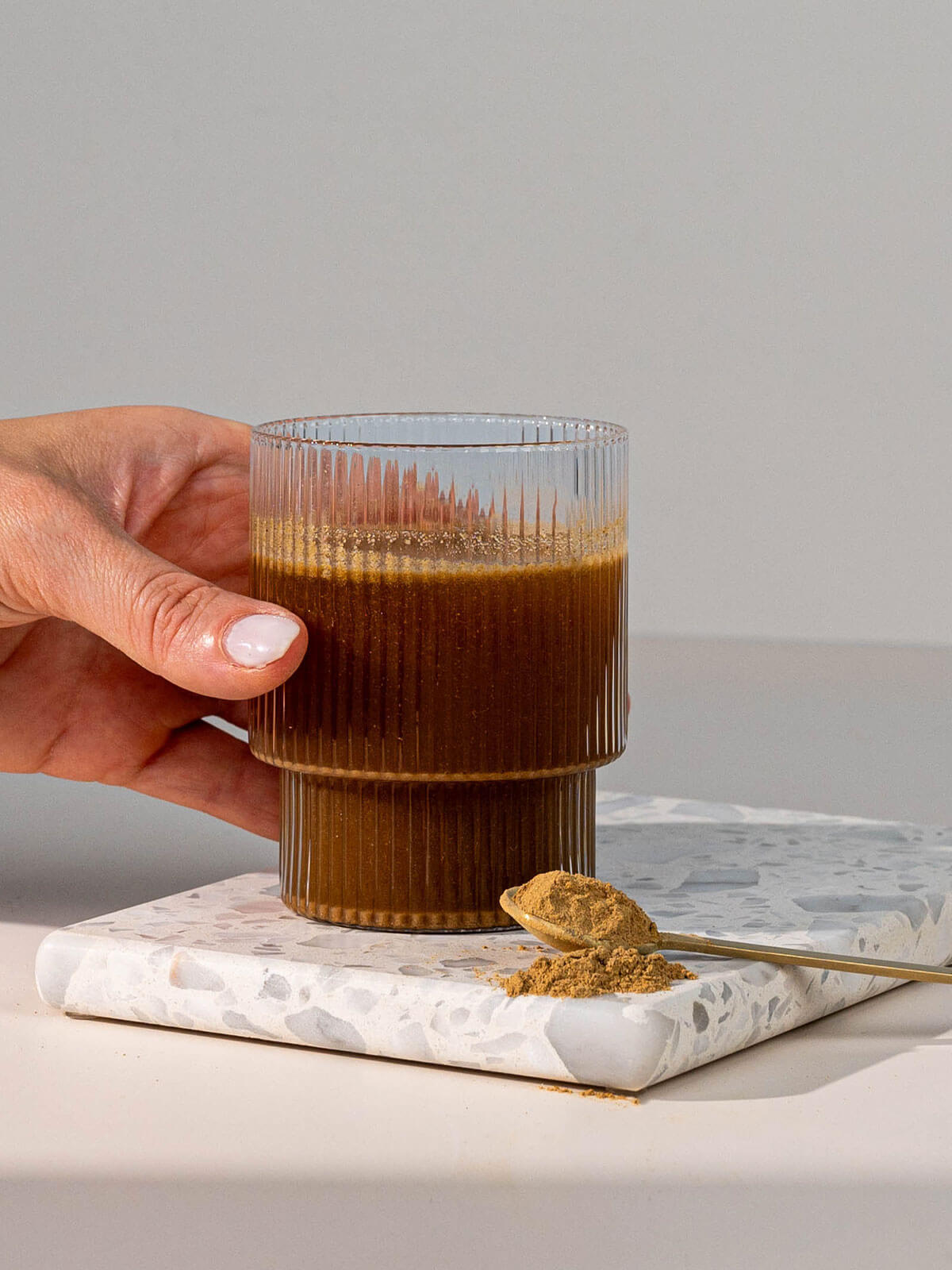 Für eine leckere und leichte Anwendung kannst du unser Triphala Pulver mit erwärmter Pflanzenmilch vermengen. Erwärme die Milchalternative dafür zuerst in einem Topf und gib 3 g (1 Teelöffel) des Bio Triphala Pulvers hinzu. Anschließend kannst du mit Honig oder Ahornsirup etwas natürliche Süße beifügen. Achte darauf, nicht zu viel zu verwenden, um deinen Blutzucker nicht aus der Balance zu werfen.